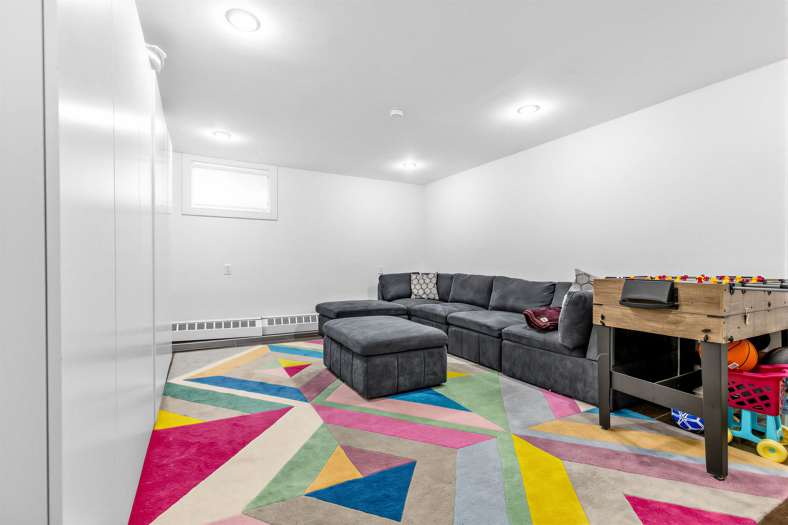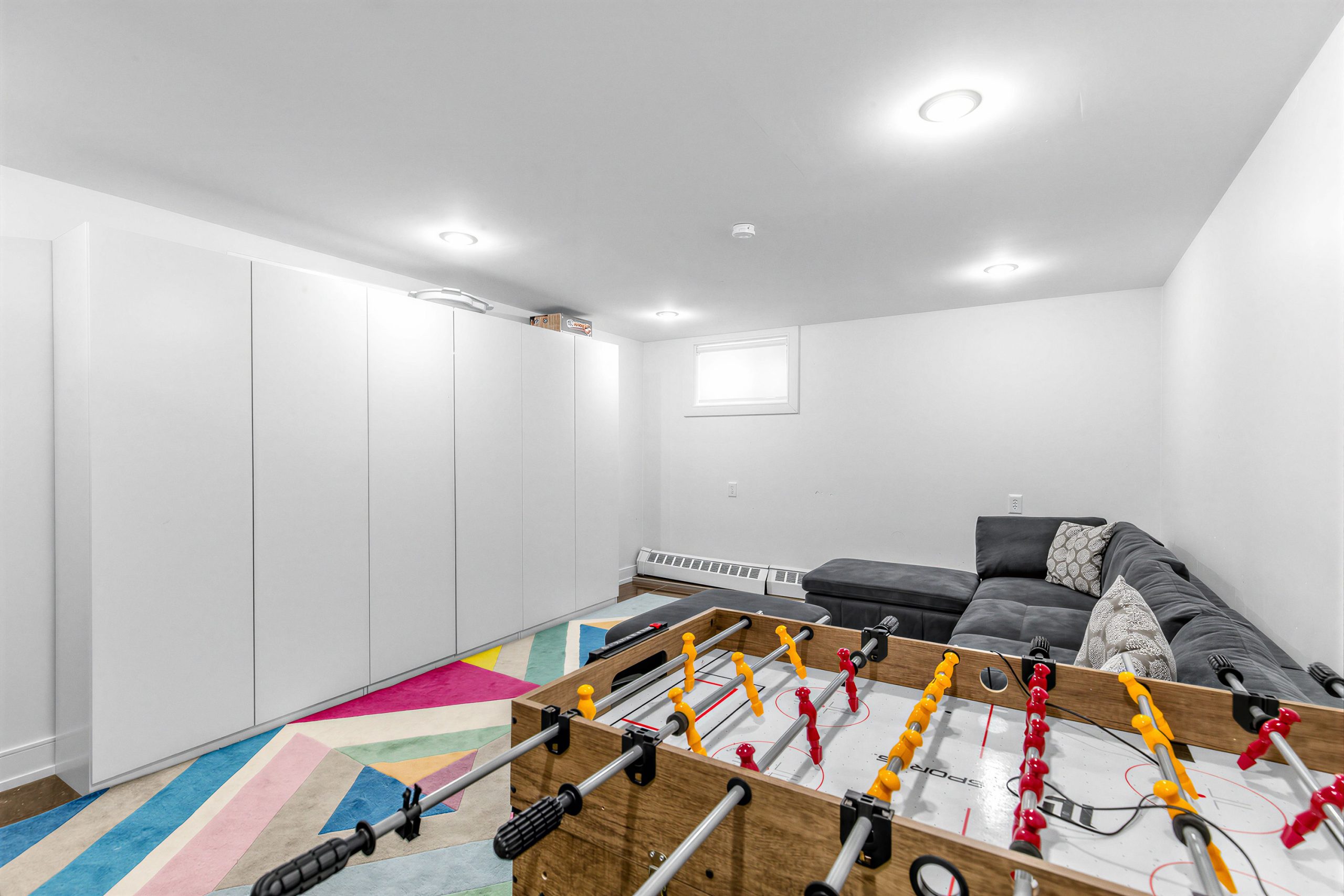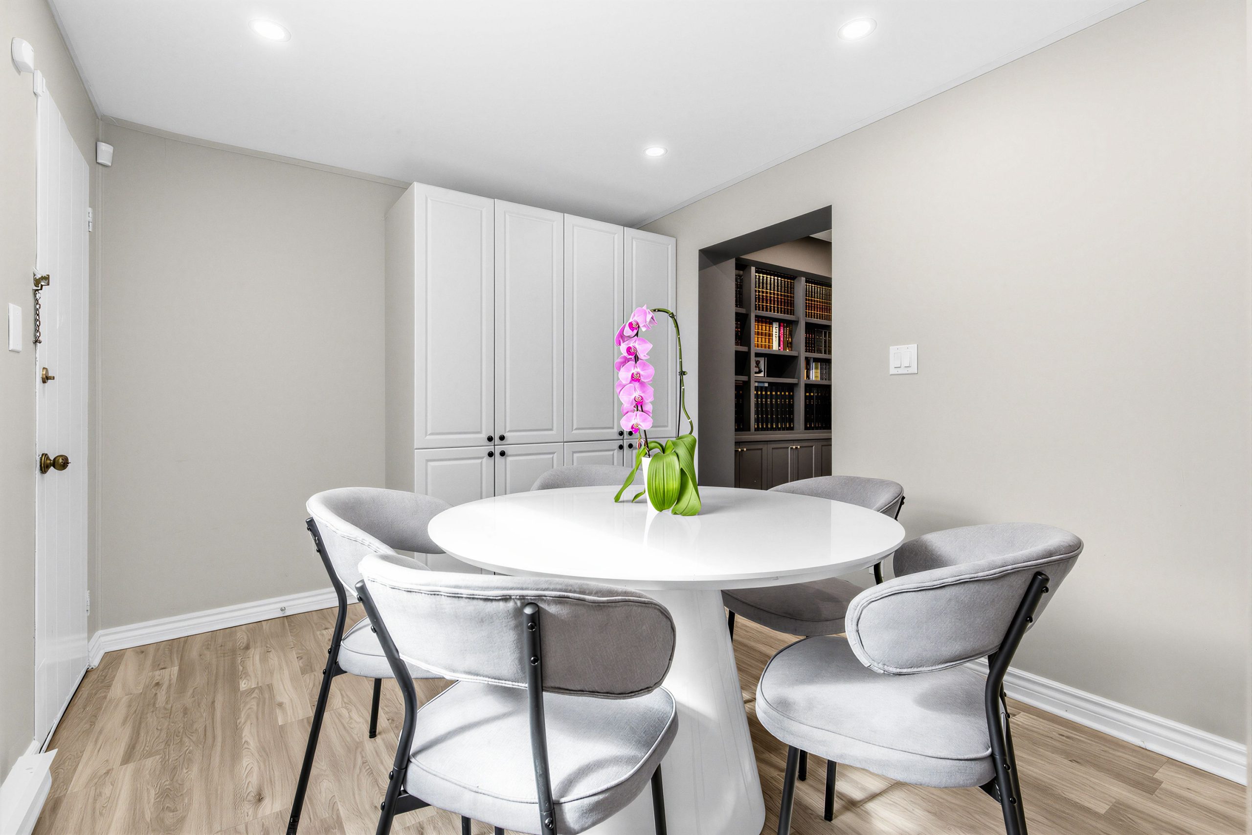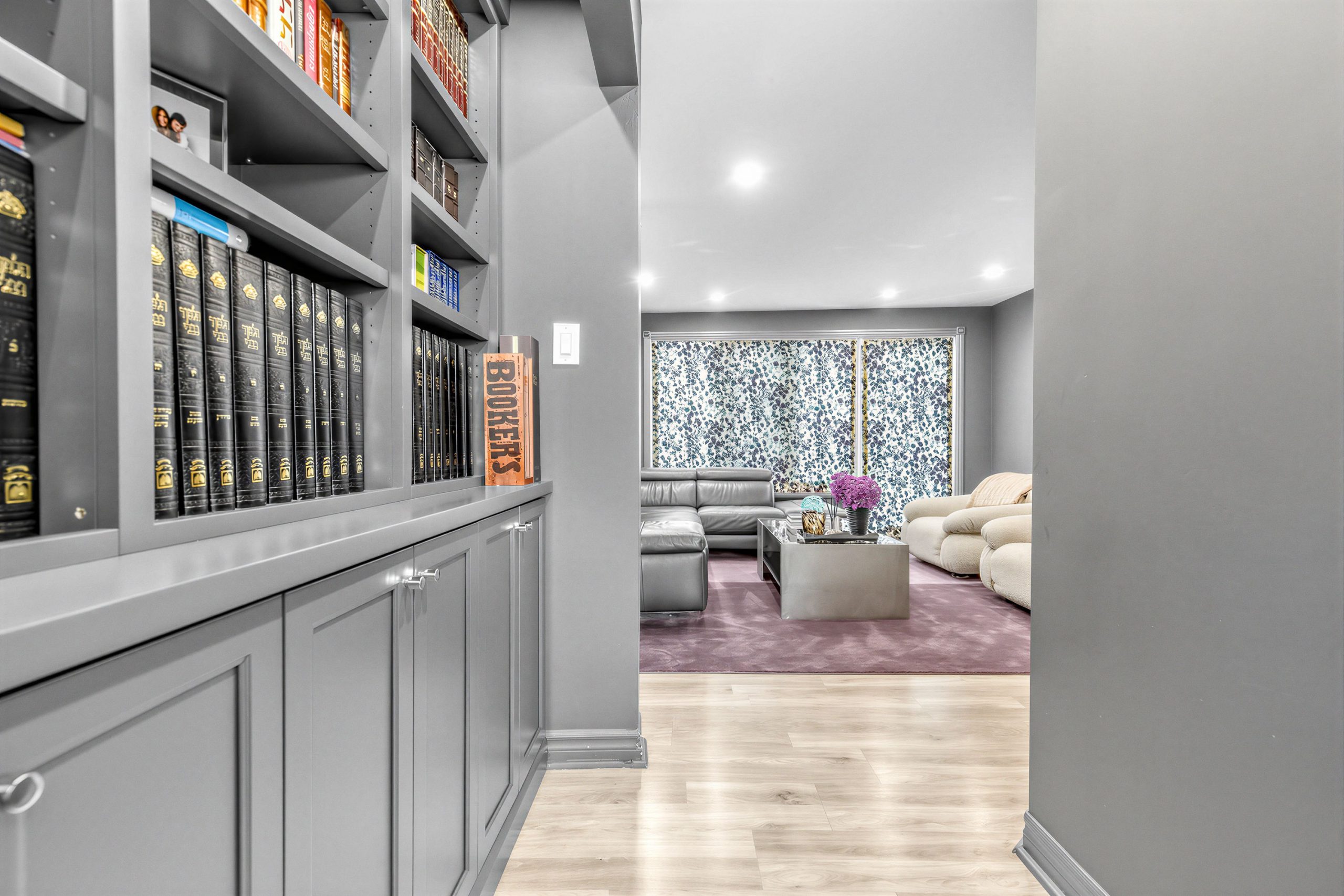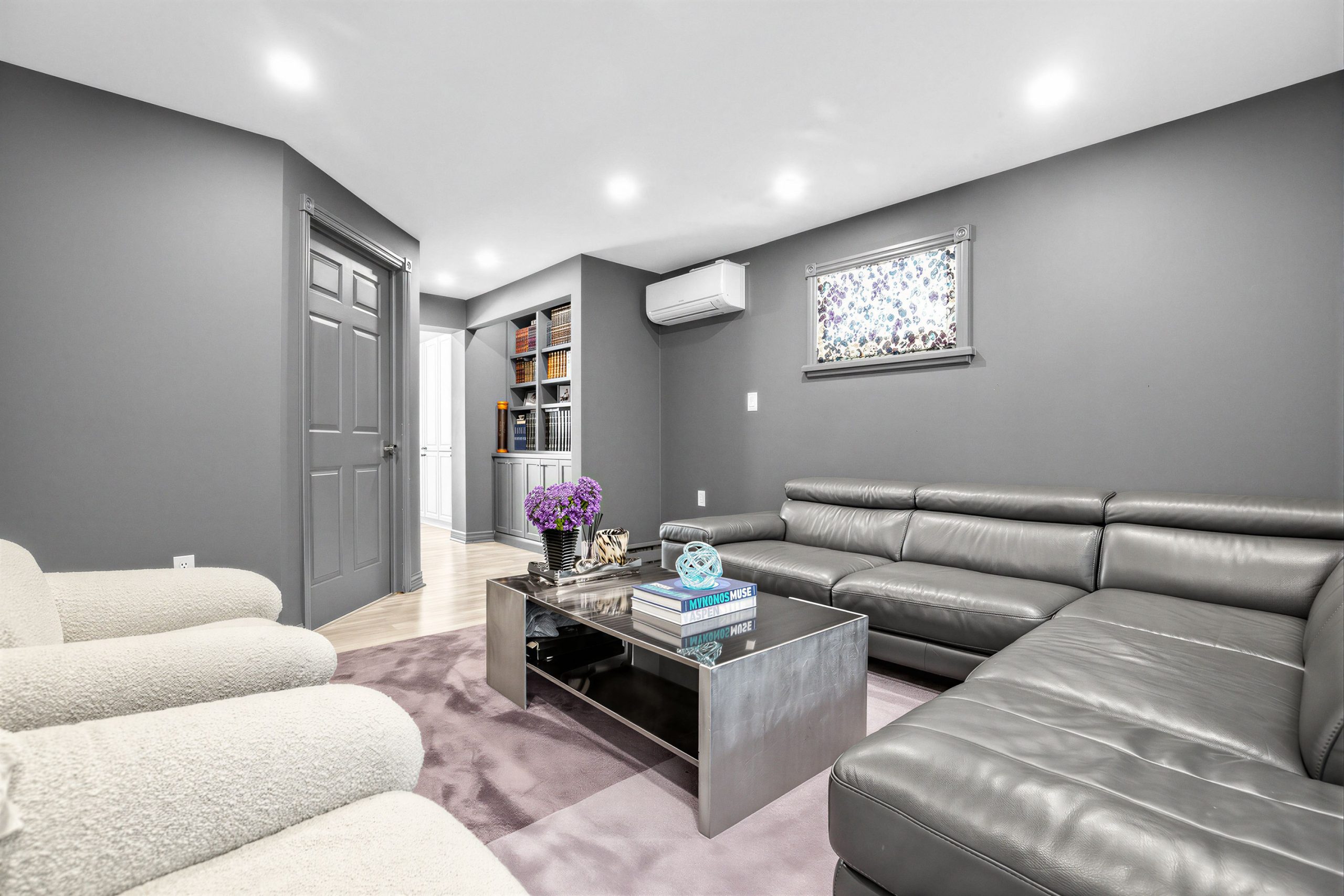The main floor also features a cozy family room with custom built-in bookcases and natural light throughout. Hardwood floors, recessed lighting, abundant storage, and a fully finished basement with large recreation space enhance this home’s appeal.
