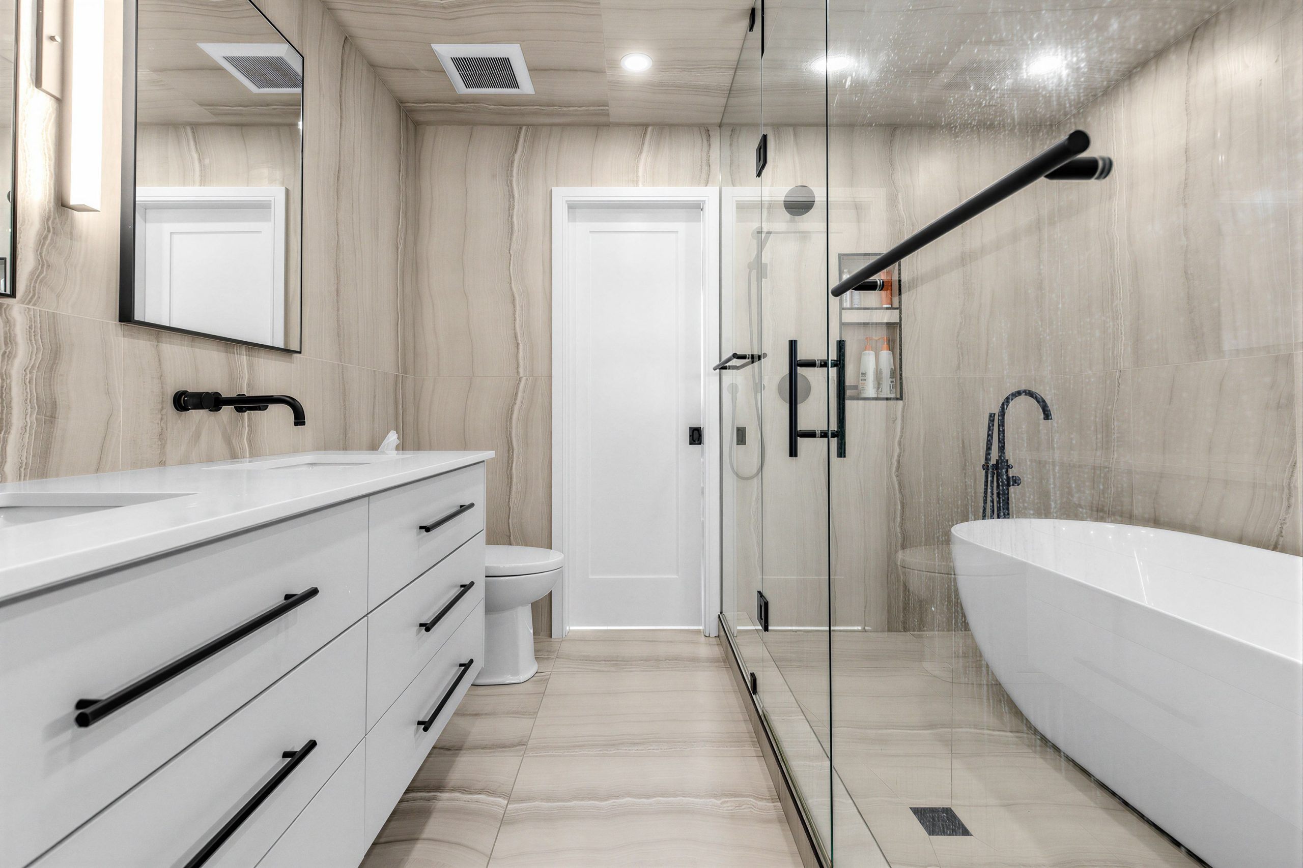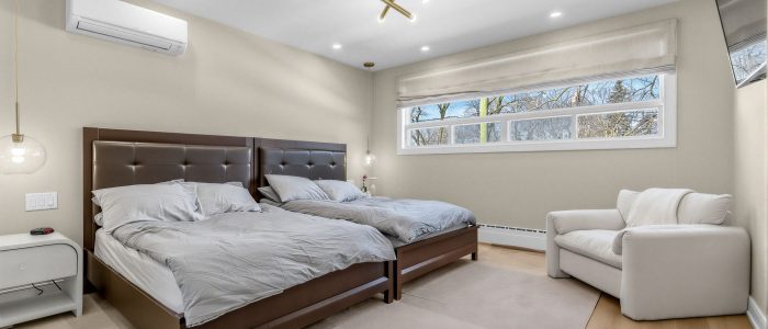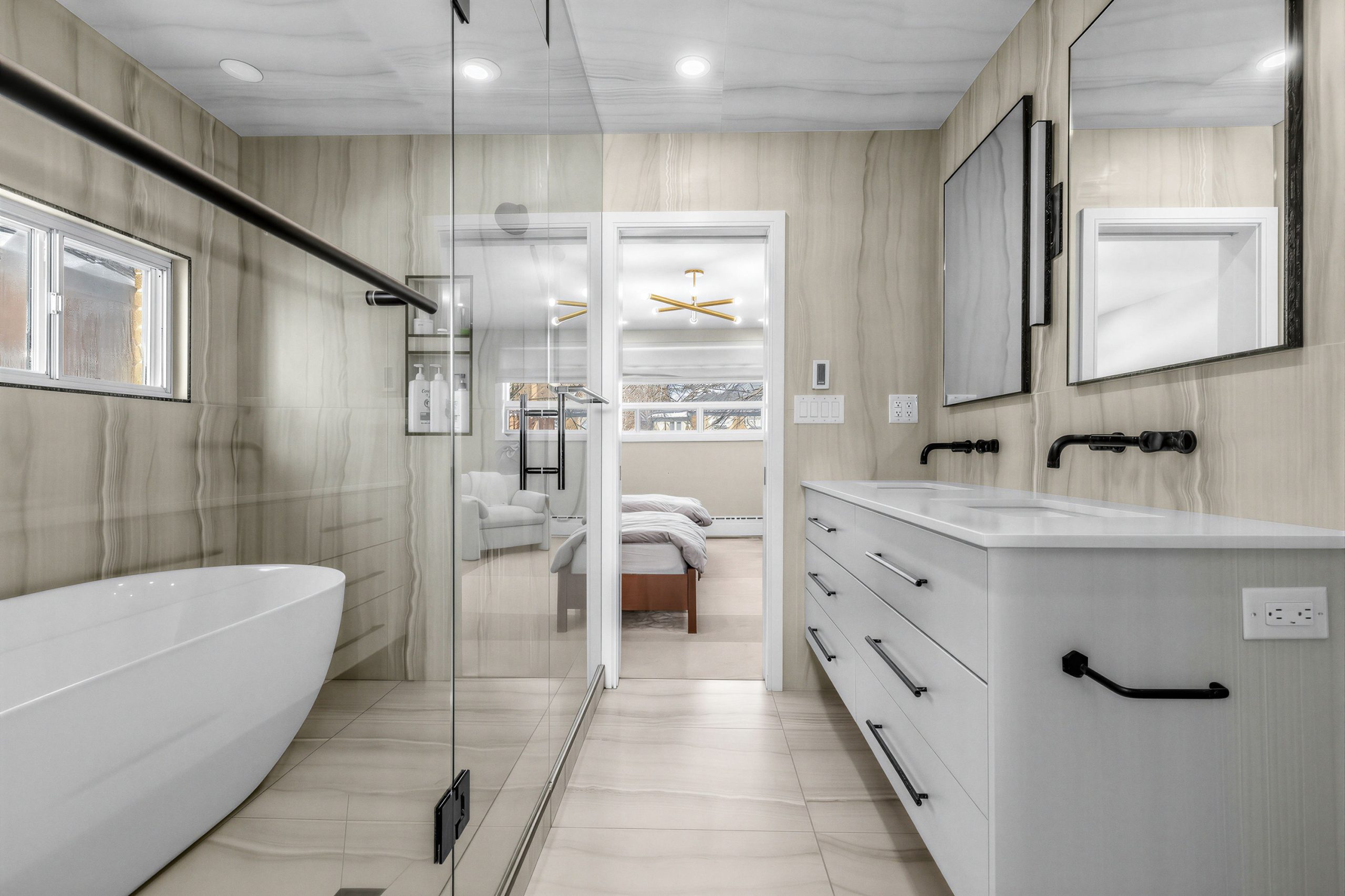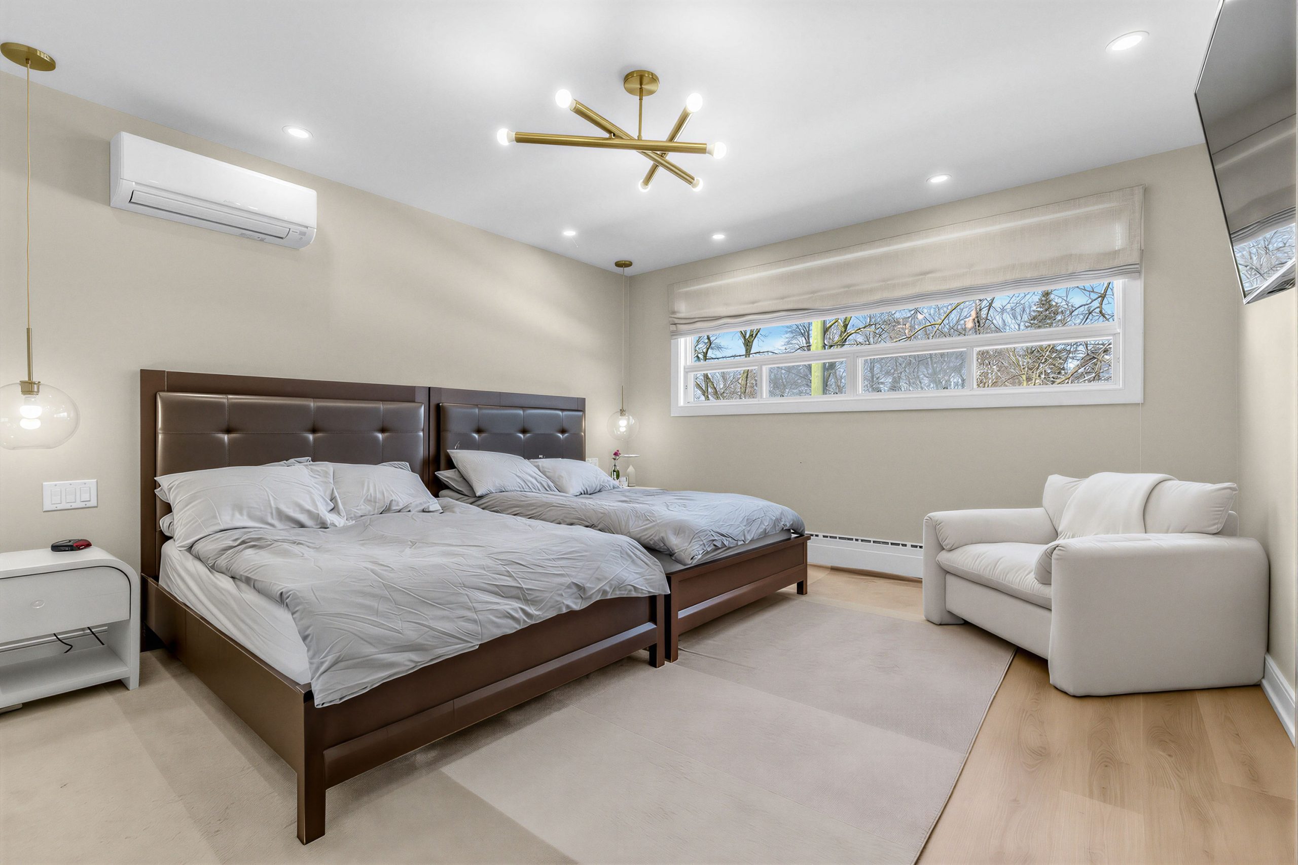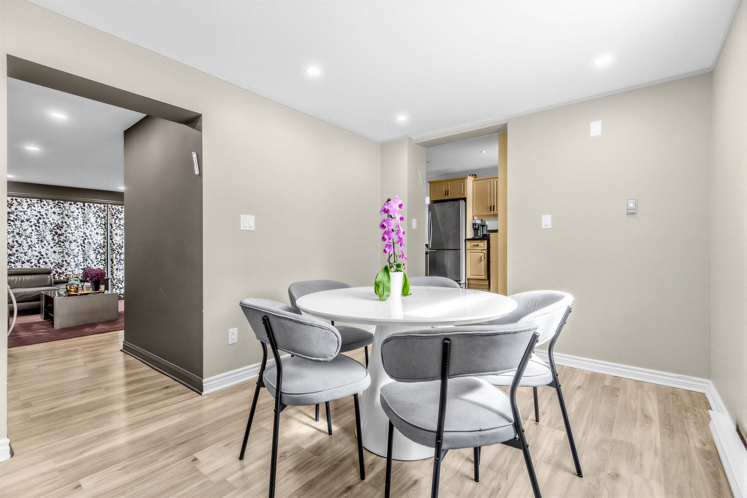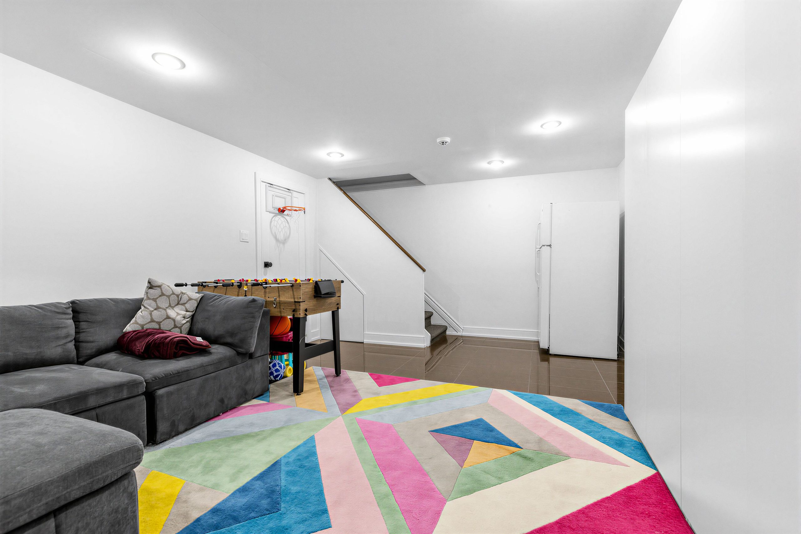 Inside, you’ll find 4 spacious bedrooms plus a versatile lower-level guest/nanny room, and 4 full bathrooms — including a luxurious primary suite with a spa-style 5-piece ensuite. Open and bright, the combined living and dining room flows seamlessly into a generous eat-in kitchen with walk-out to the backyard.