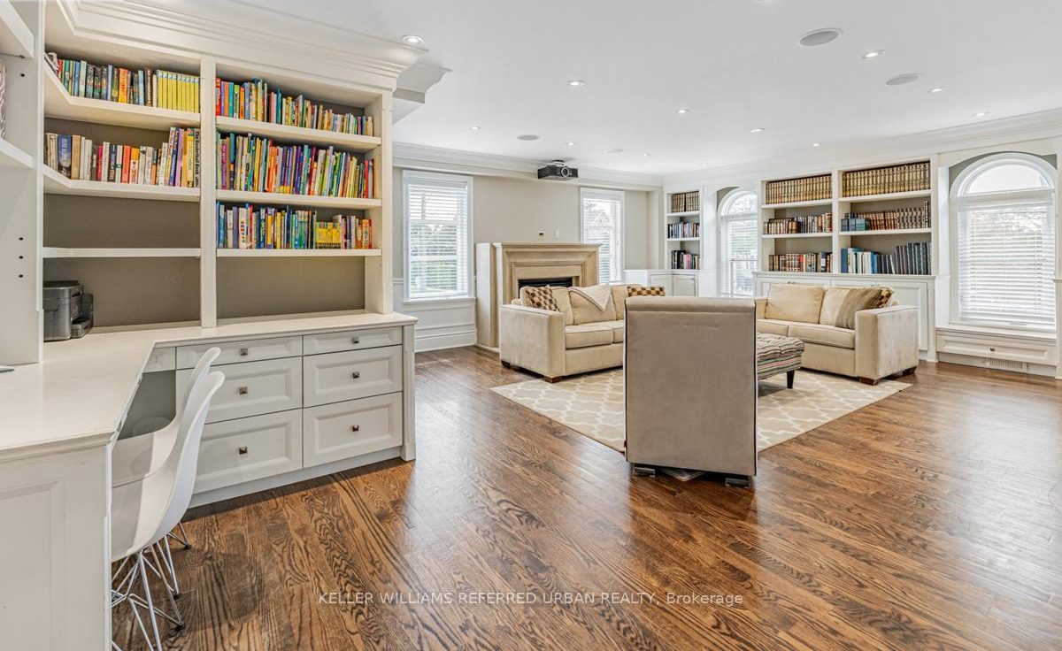 Great opportunity to own a custom-built, solid brick, 2-storey home on the highly desirable street of Glengrove Avenue! Features 5+2 bedrooms and 7 bathrooms. The combined living and dining room area flow seamlessly into a bright, large eat-in kitchen for easy entertaining. Large main-floor windows allow ample natural light to filter in. The private fenced-in yard includes a two-tiered deck and walk-outs from the kitchen and basement. Ensuite or Semi-ensuites for each bedroom, 3 fireplaces throughout the home. The mid/2nd level offers a versatile space with a spacious family room featuring custom-built-ins, picturesque windows, a fireplace, and a film projector for quality family entertainment! This house boasts two upper and lower-level laundry rooms, a large rec/play area, and a guest/in-law-suite in the basement.