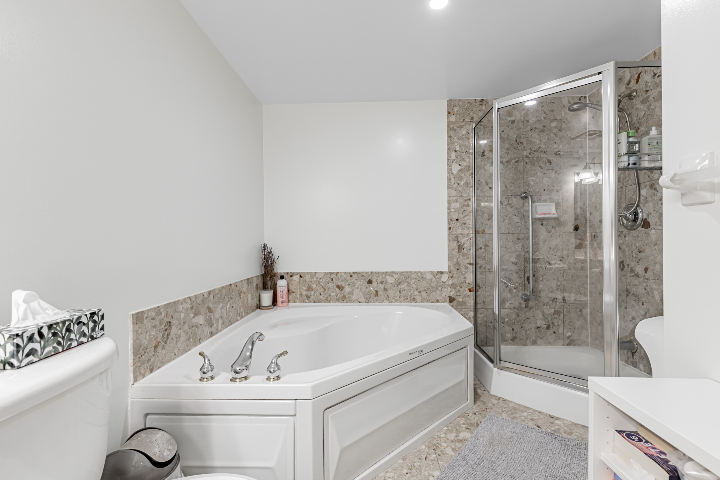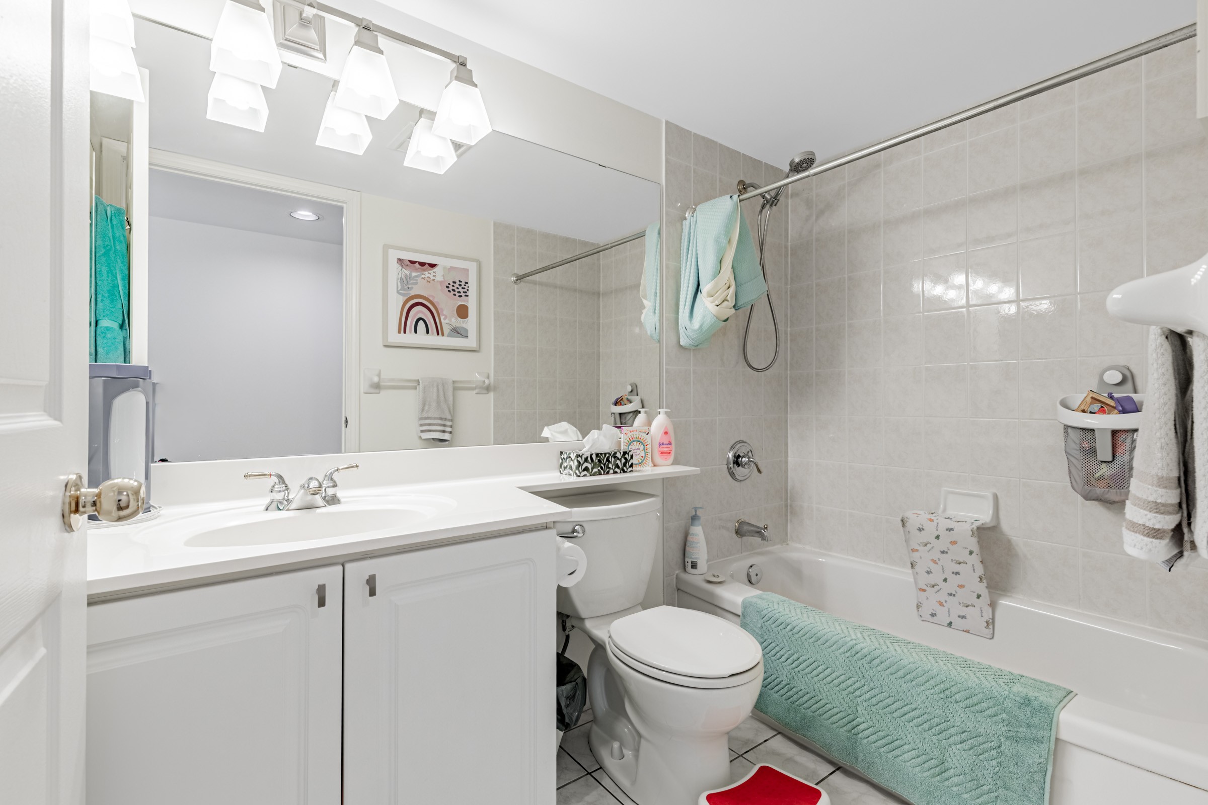 A generous living and dining area connects seamlessly to a private balcony, while the modern kitchen offers stainless-steel appliances, breakfast bar, and plenty of storage. The spacious primary bedroom includes a walk-in closet and a 4-piece ensuite, complemented by a second bedroom perfect for guests or work-from-home flexibility.